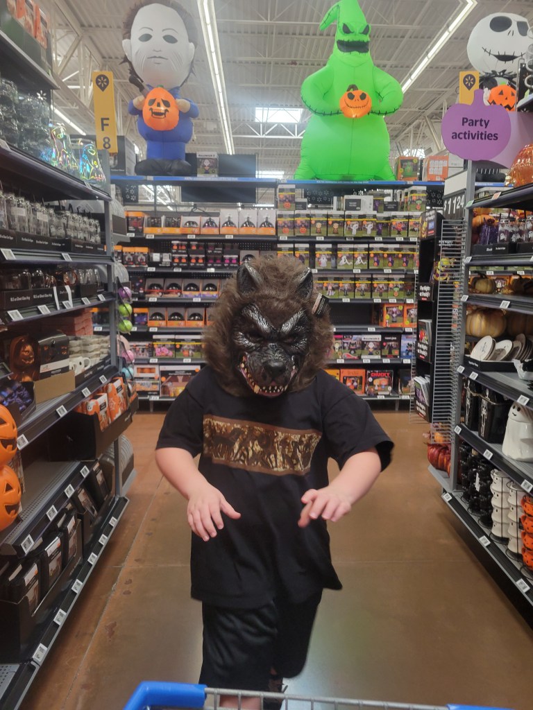 Hunter wore his mask the entire time and collected a huge amount of candy.