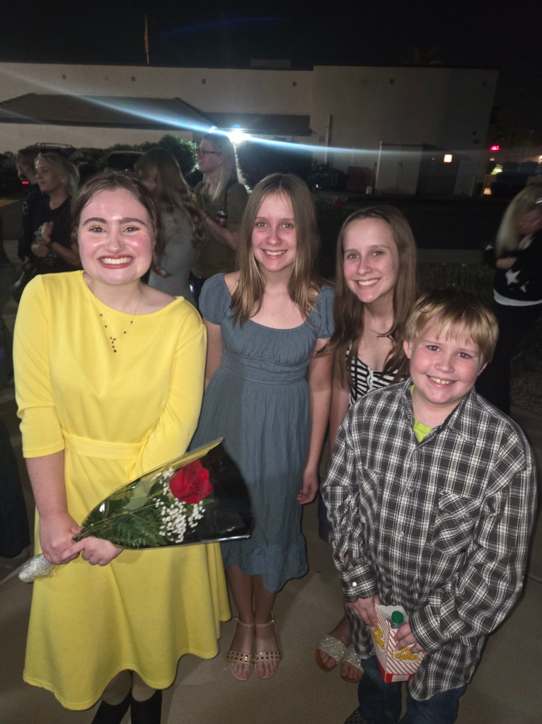 Justin took the kids to watch Grace in the production of Addams Family. They loved it. The crew said she did amazing. I can’t believe Grace will be in college next year—it’s been wild to see her grow into a young adult.